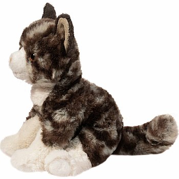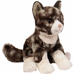 Cuddle up with a lovable friend every time you take Trixie the Soft Cat stuffed animal into your arms! With eyes the color of pumpkin spice and a subtle smile, this plush kitten's expression will warm your heart. Her bean-filled, floppy body features a design that can be posed sitting up or lying down. High quality polyester fill will ensure Trixie will be around for a lifetime of hugs and play. Creams and browns combine across her coat to create a mottled appearance that will charm feline fans of any age. Pale colored stockings and a fluffy bib at her chest complete Douglas' kitten's lifelike markings. Always eager for a cozy nap on your lap, Trixie is an ideal pet!