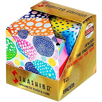 Unlock the geometric secrets of Shashibo! This mysterious magnetic puzzle box transforms into over 70 shapes! It may look like an ordinary box on the outside, but each Shashibo has a kaleidoscope effect once you open it and begin to connect the magnets to create geometric shapes. Collect and connect several to build larger structures and create more possibilities as you add boxes. Gently fidget, twist, and let the magnets guide you. Can you master the shape shifting box? What will you create?