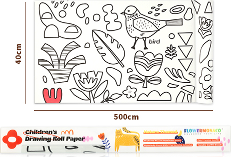 There is a tearable line every 23.5" (40cm) on the roll. The full-length roll is over16 feet long (5m), with non-repeating icons and symbols, allowing children to immerse themselves in it like watching animations and unleash their creativity.